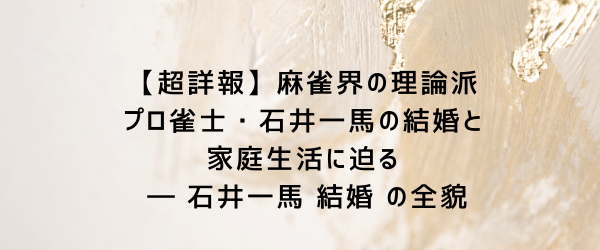 石井一馬さんは、プロ雀士としての輝かしいキャリアと共に、家庭生活でもパートナーと支え合いながら充実した日々を送っている人物です。著書がパートナーへの想いから生まれたことからも、麻雀への情熱だけでなく家庭への愛情も深いことがうかがえます。今後もプロとしての飛躍と、幸せな家庭生活の両方が注目されています。