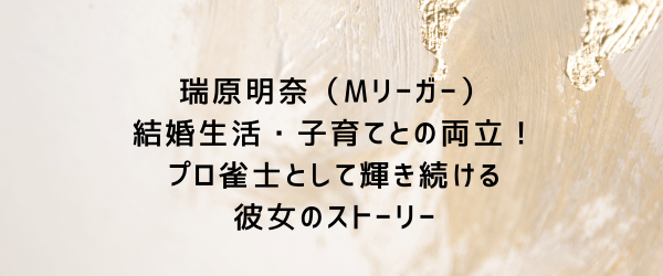 瑞原明奈(Mリーガー)結婚生活・子育てとの両立!プロ雀士として輝き続ける彼女のストーリー